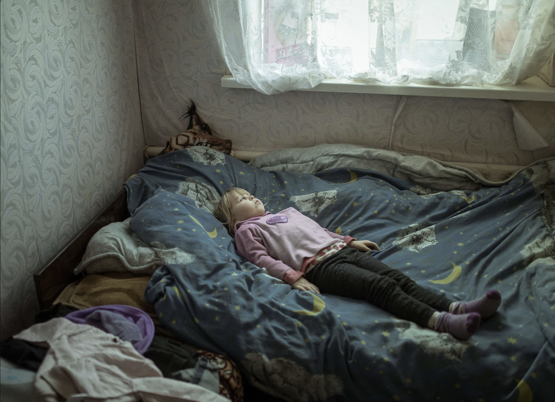 German photographer Florian Bachmayer portrayed six-year-old Angelina from the Kharkiv region who suffers from panic attacks after fleeing from shelling. The photo is titled “Beyond the Trenches.”