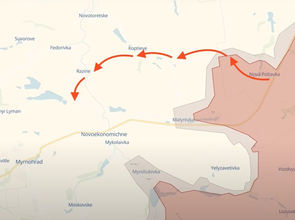 Ukrainian analyst Kostiantyn Mashovets notes that Russia may be pursuing two competing objectives: a push toward Kostiantynivka from the southwest and a breakthrough toward Pokrovsk from the east.