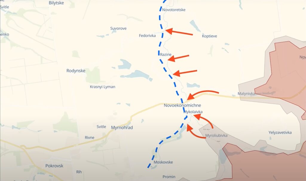 The offensive on Novoekonomichne is unfolding along three main vectors across a narrow 9 km front: