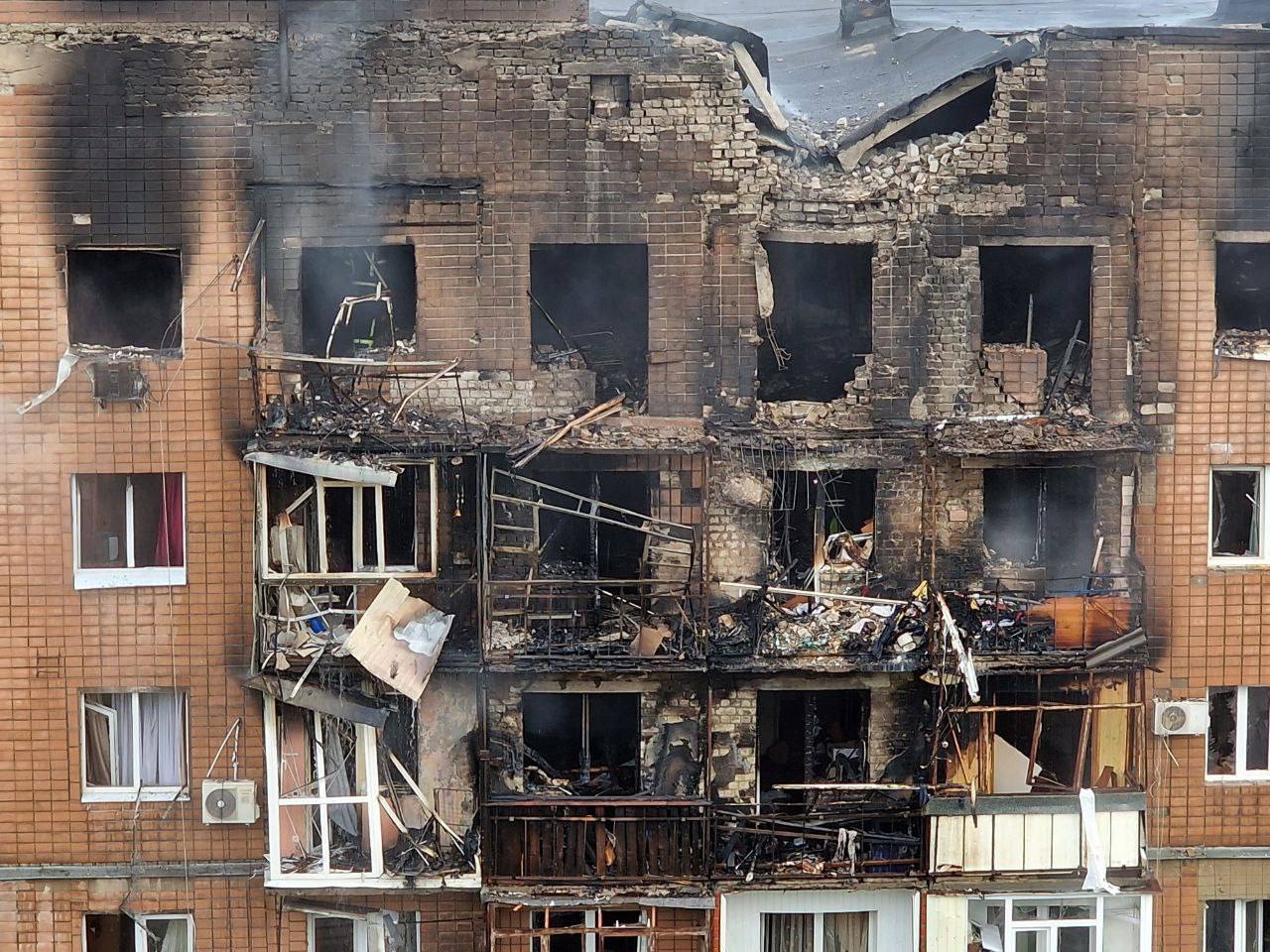 For example, in a 24-story building in the Saltivka district damaged during the night shelling on 12 June, construction materials had to be carried up manually because the elevators were without power.